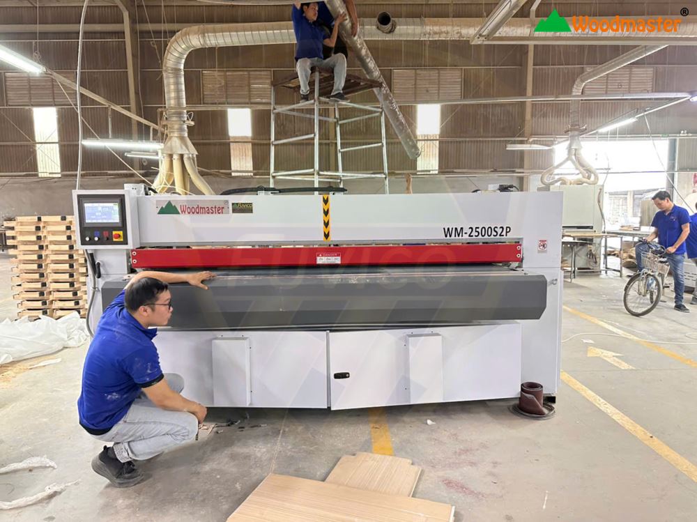 Hình ảnh MÁY CHÀ NHÁM BĂNG PIANO CNC 2 BĂNG WM-2500S2P được bàn giao cho khách hàng.