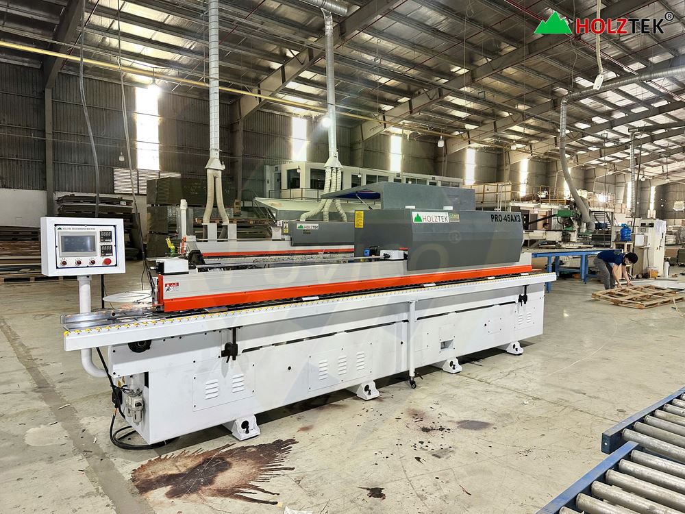 Hình ảnh MÁY DÁN CẠNH VÁT 45 ĐỘ TỰ ĐỘNG (cạnh đứng 3mm cực đẹp) được bàn giao cho khách hàng.