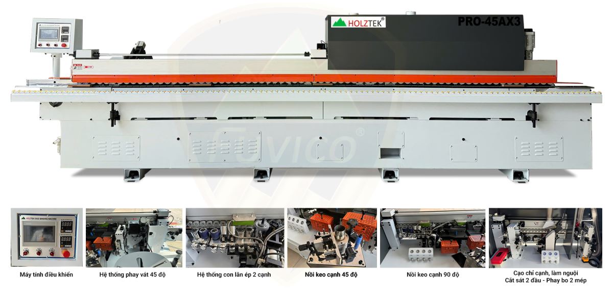 - Hệ thống phay vát cạnh ván 45 độ
