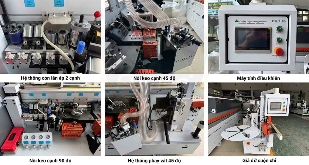 - Hệ thống 2 nồi keo cạnh 45 và 90 độ