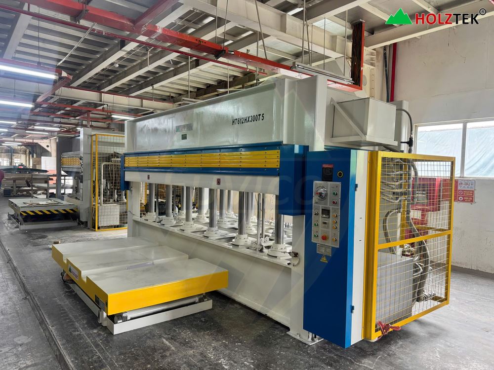 Hình ảnh Máy ép nhiệt thủy lực 2X4M 5 tầng (lực ép 300T) HT612Hx300T5 được bàn giao cho khách hàng.