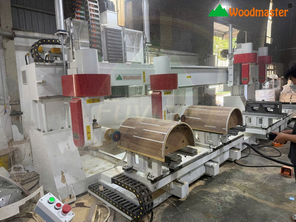 Hình ảnh MÁY PHAY CNC 3D 5 TRỤC 4 ĐẦU LÀM VIỆC 2 BÀN KÉP PRO-MASTER-T4X4 HOT 2025 được bàn giao cho khách hàng.