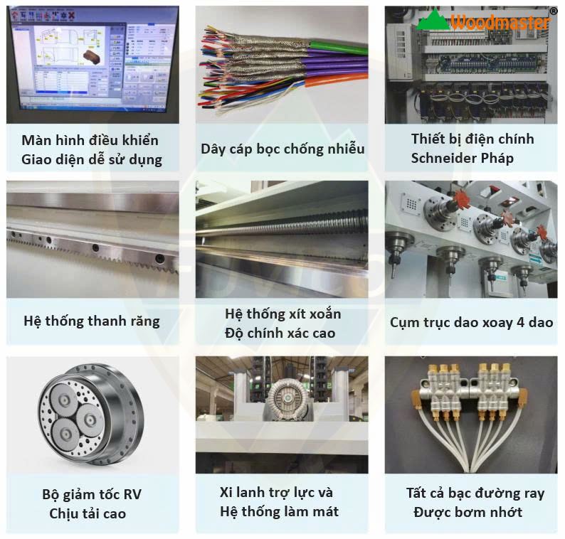 - Hệ thống kẹp phôi xoay: 0/+90/+90 độ