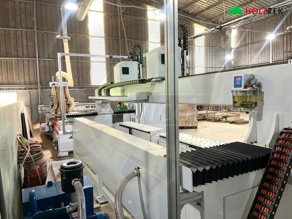 Hình ảnh MÁY CNC 4D BÀN KÉP 2 TRỤC CẮT VÁN ÉP UỐN CONG được bàn giao cho khách hàng.