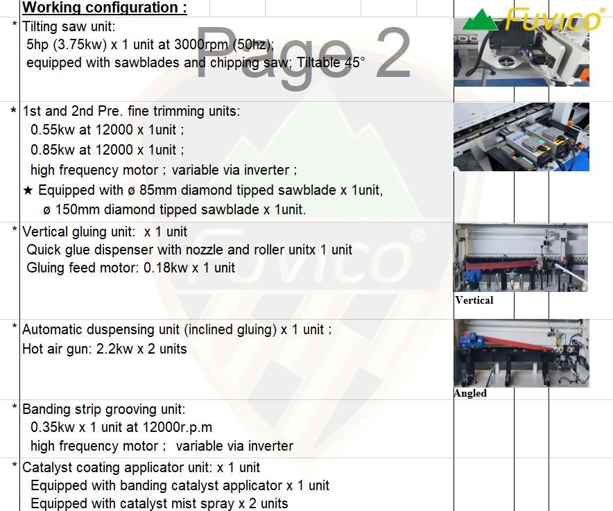 2/ Hệ thống phay thẩm cạnh: 0.55 + 0.85kw (lưỡi cưa răng kim cương)