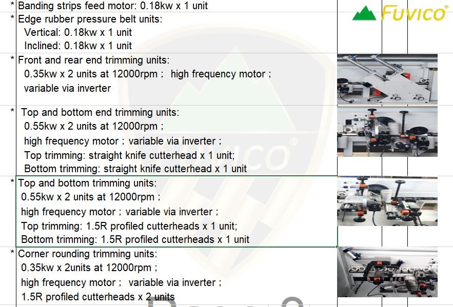 8/ Hệ thống phay bo cạnh trên dưới: 0.55kw x 2, sử dụng dao thẳng